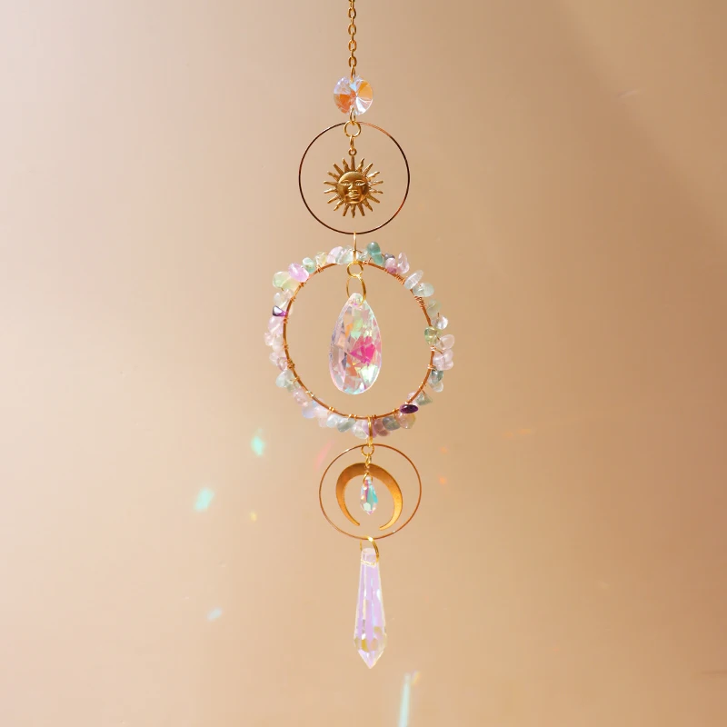 اشتر حار بيع صائد الشمس الكريستالي ديكور الزجاج الملون المنشور الكريستالي صائد الشمس المعدني المخصص على شكل قمر الشمس من منتجات المنزل والحديقة من مصنع الصين مباشرة عبر الرابط
