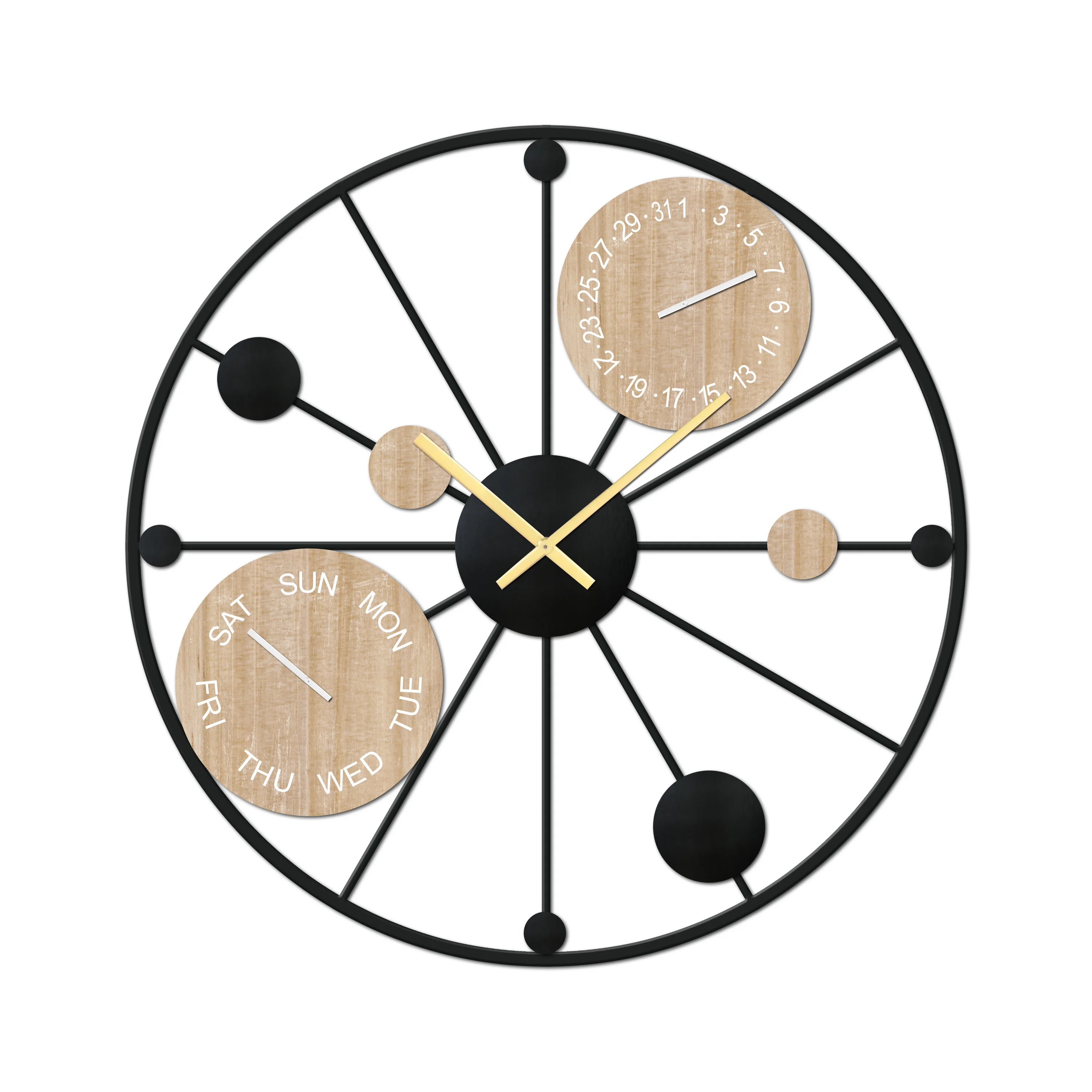 ساعة عتيقة معدنية كلاسيكية جديدة مقاس 60 سم على شكل دائري هيكل حديدي صناعي ديكور منزلي ساعة حائط سوداء ساعة ديكور حائط Ironm