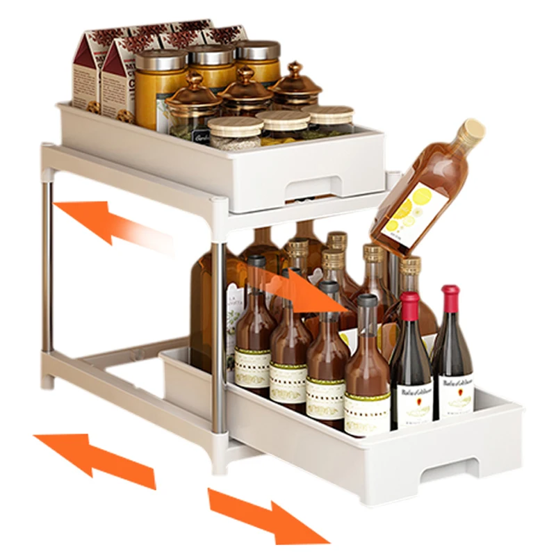 اشتر سلة خزانة بلاستيكية منزلقة مكونة من طبقتين يمكن سحبها للخارج أسفل منظم رف حوض خزانة المطبخ من منتجات المنزل والحديقة من مصنع الصين مباشرة عبر الرابط