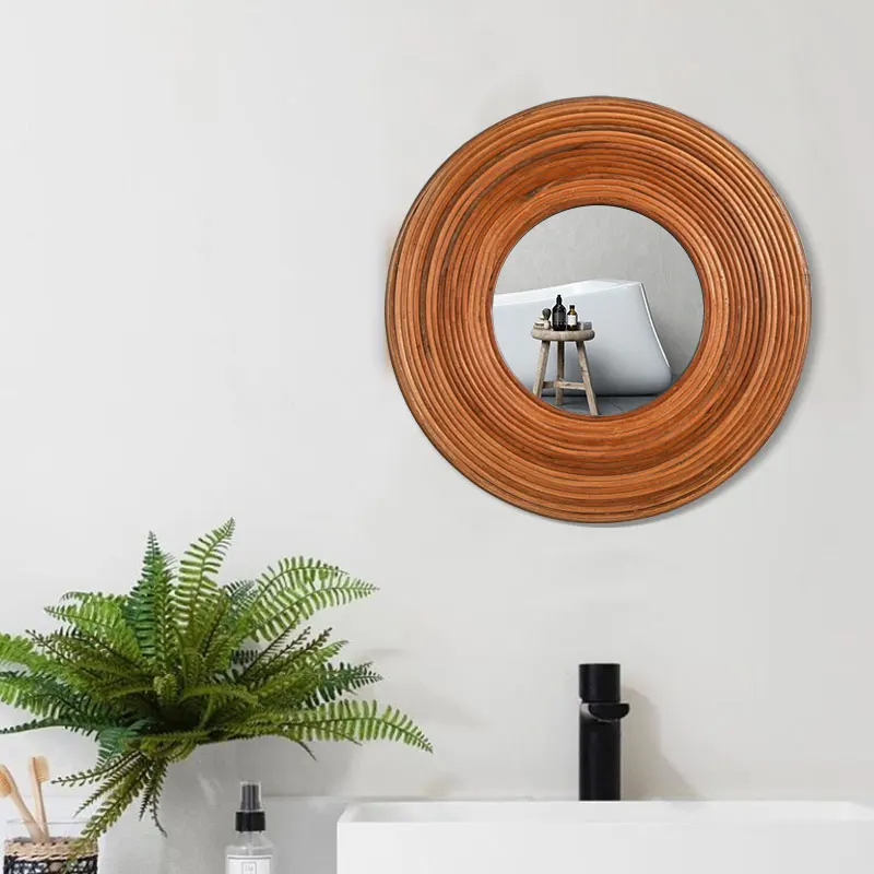 اشتر مرايا حائط حديثة فاخرة من الخيزران بقطر 40 سم، مرآة حائط دائرية بنية اللون عالية الجودة من منتجات المنزل والحديقة من مصنع الصين مباشرة عبر الرابط