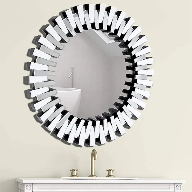 اشتر مرايا حائط زجاجية مستديرة بتصميم أنيق مقاس 90 سم مرآة حائط فضية كبيرة مزخرفة لغرفة المعيشة من منتجات المنزل والحديقة من مصنع الصين مباشرة عبر الرابط