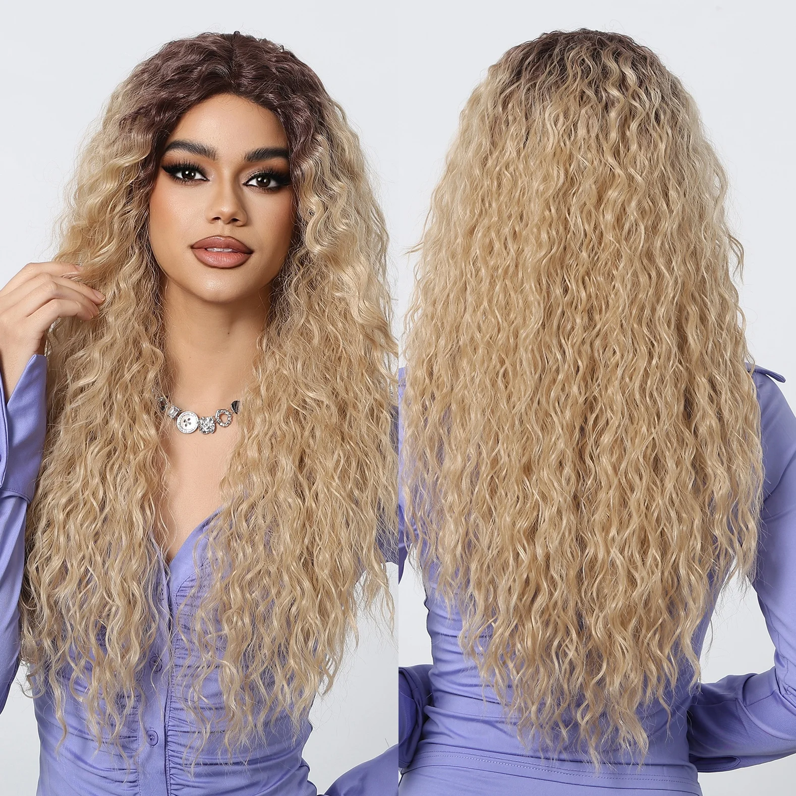 اشتر باروكة شعر مستوردة من الألياف الكيميائية الأمامية من الدانتيل مجعدة للغاية بلون العسل شعر أسود جذري ناعم عالي الكثافة ناعم موجة أفريقية فائقة من منتجات جمال من مصنع الصين مباشرة عبر الرابط