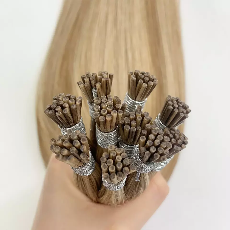 اشتر وصلات الشعر الكمبودية البكر المصنوعة من الكيراتين على شكل حرف I، شعر ريمي مستقيم حريري من الدرجة 12A، شريط مسبق اللصق للنساء باللون الأسود من منتجات جمال من مصنع الصين مباشرة عبر الرابط