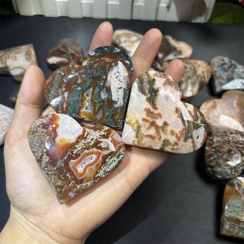 You are currently viewing الجملة الشفاء الكريستالي الحجارة المصقولة قلب العقيق الطحلبي الأحمر مع دروزي للديكور