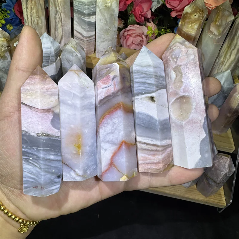 اشتر برج الأحجار الكريمة الكريستالية الطبيعية عالي الجودة Druzy Pink Agate Point Sardonx Agate Tower لفنغشوي من منتجات من مصنع الصين مباشرة عبر الرابط