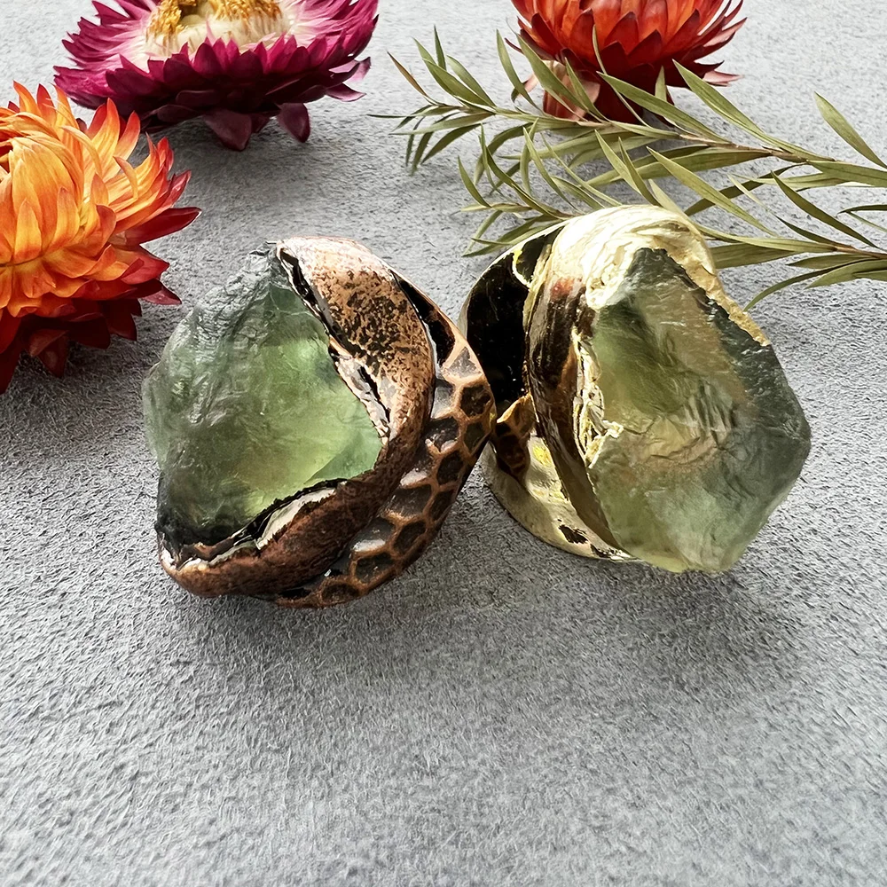 اشتر خاتم كوارتز خام بتصميمات جديدة، خاتم من حجر الفلوريت الأخضر مع خاتم قابل للتعديل مطلي بالبرونز العتيق الذهبي للجنسين من منتجات المجوهرات والنظارات والساعات والإكسسوارات من مصنع الصين مباشرة عبر الرابط