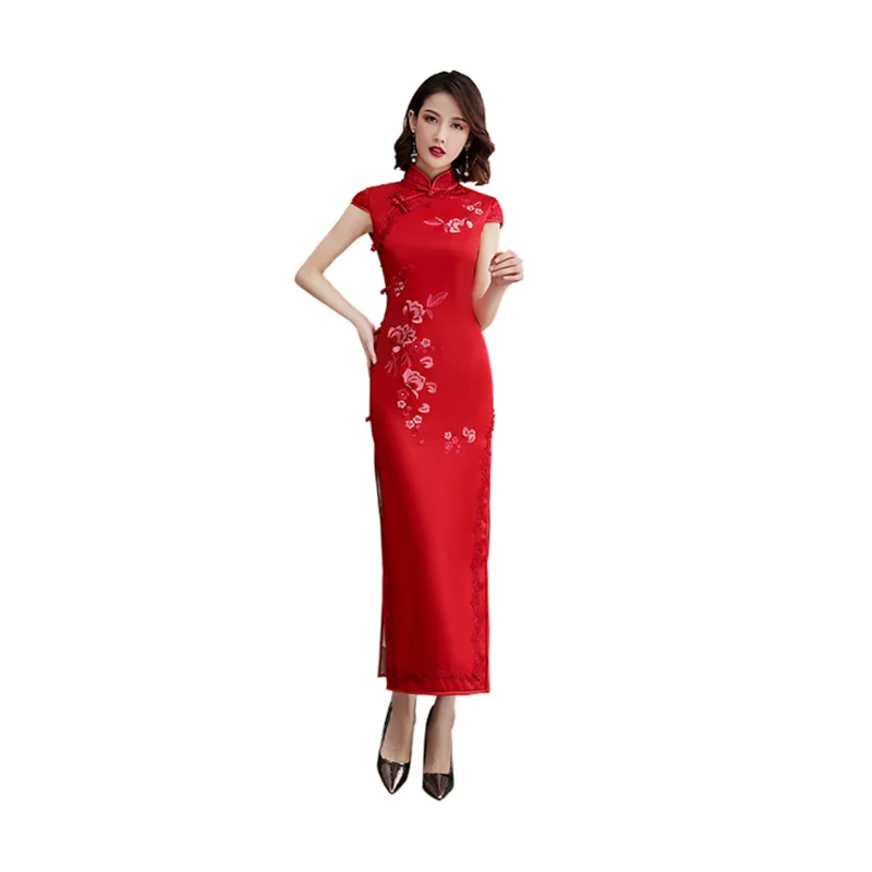 اشتر فستان حريري متوسط الطول من تشيباو للنساء والفتيات والسيدات بفتحة عالية باللون الأحمر من مصنع تشيونغسام الصيني المحسن للمساء من منتجات الملابس والاكسسوارات من مصنع الصين مباشرة عبر الرابط