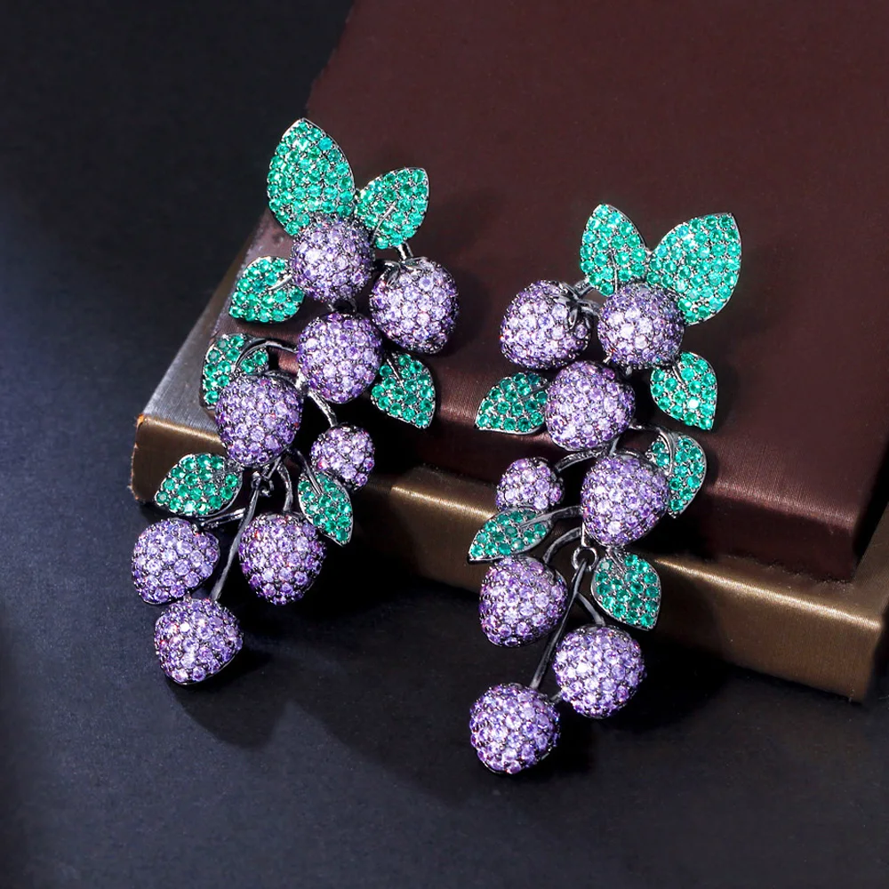 اشتر قرط زفاف نسائي كبير طويل متدلي من حجر العنب على شكل أوراق الفاكهة مرصع بكريستال الزركون الأخضر الأرجواني من منتجات المجوهرات والنظارات والساعات والإكسسوارات من مصنع الصين مباشرة عبر الرابط