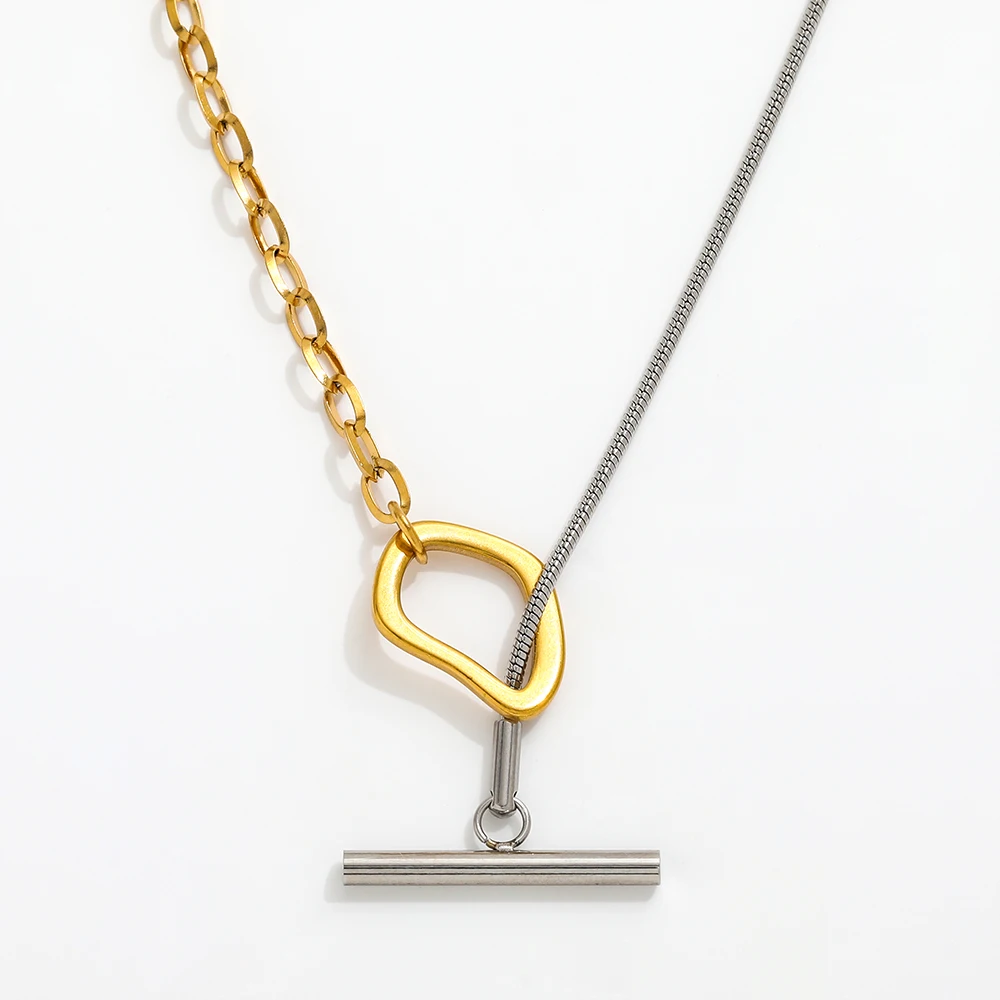 قلادة JOOLIM المصنوعة من الفولاذ المقاوم للصدأ المطلية بالذهب عيار 18 قيراطًا والمزودة بسلسلة ثعبان مختلطة بلونين ومجوهرات عصرية جاهزة للشحن