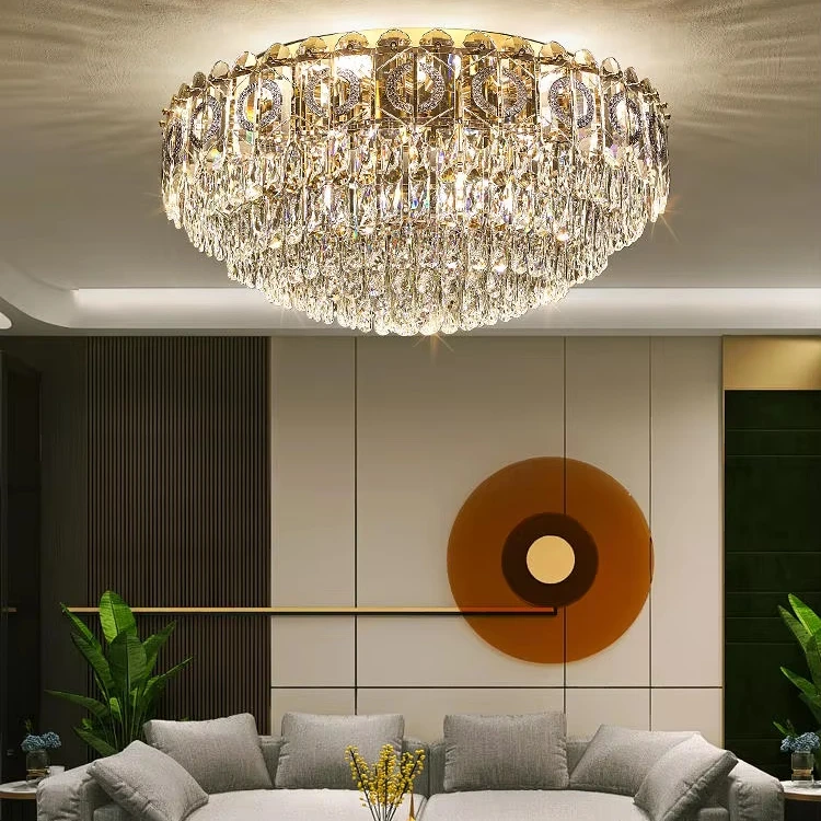اشتر مصباح سقف كريستالي فاخر حديث K9 لغرفة المؤتمرات غرفة الفندق غرفة المعيشة ثريا سقف كريستالية ذهبية مستديرة بيت من منتجات الأضواء والإضاءة من مصنع الصين مباشرة عبر الرابط