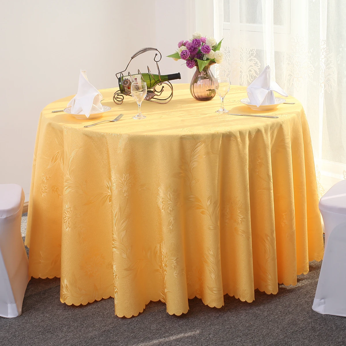اشتر مفرش طاولة زفاف دائري من نسيج الجاكار الأصفر لتزيين طاولة الفندق، أغطية طاولة من البوليستر بنمط زهرة ذيل الفينيق من منتجات المنزل والحديقة من مصنع الصين مباشرة عبر الرابط